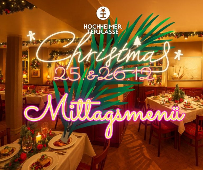 Genießen Sie die Feiertage ganz entspannt bei uns im Herzen der Hochheimer Altstadt. In festlicher Atmosphäre servieren wir Ihnen ein liebevoll zusammengestelltes Weihnachts-Mittagsmenü – klassisch, regional und mit einer feinen vegetarischen Alternative. Perfekt für den genussvollen Familienmittag nach dem Auspacken oder als gemütlicher Treffpunkt mit Freunden.
